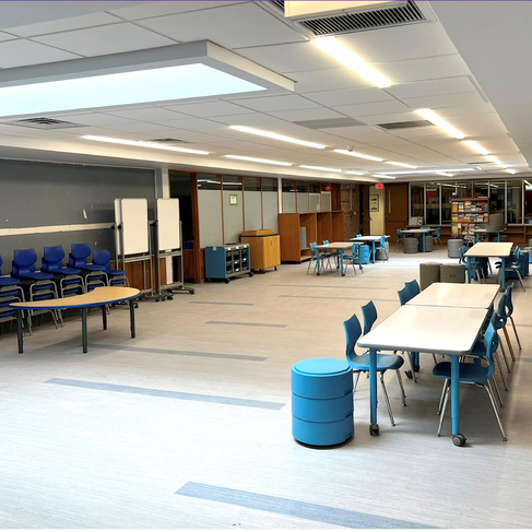 At IMES, a major project is construction of a new classroom addition and the removal of modular classrooms. That work is progressing, with foundations poured and in place for the new addition. Renovations of the library and STREAM lab are also underway, with substantial work already done.